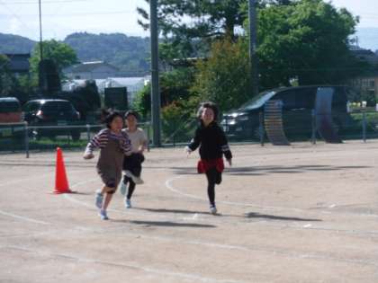 気持ちのよい朝、今日は、4年生と6年生がグラウンドに出て、朝トレを行いました。