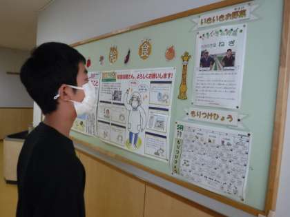 また、給食室の前の廊下の掲示板には、給食に関する情報が満載です。