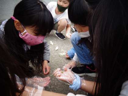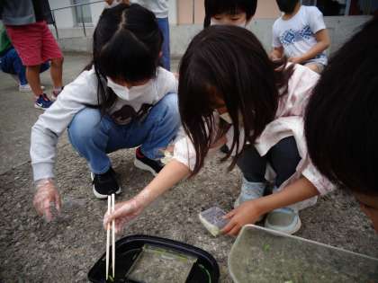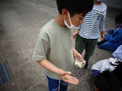 理科の学習では、チョウの成長を調べます。今日は一人に一匹、幼虫を渡しました。大切に育ててくれることを期待します。キャベツ等、葉物の協力よろしくおねがいします。