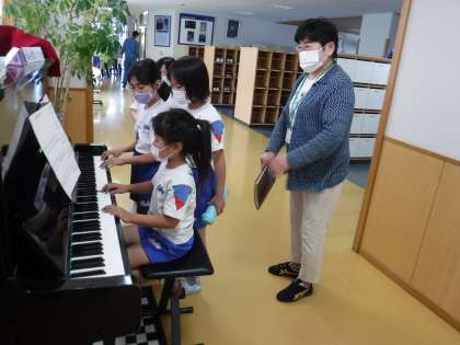 5月18日(水)先生、きいて♪ 公開日 2022/05/18 更新日 2022/05/18 メール用カテゴリ 老田小学校の廊下ピアノには、たくさんの子供たちが練習したり、曲を披露したりしています。 今日は、スクールカウンセラーの先生に「先生、きいて」と声をかけ聴いていただきました。