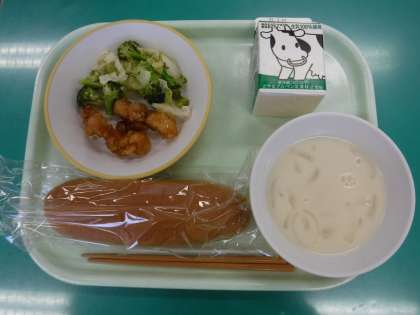 今日の給食 公開日 2022/05/18 更新日 2022/05/18 本日の給食 今日の給食の献立は、 黒糖パン 牛乳 鶏肉のマーマレードソースかけ イタリアンサラダ ビーンズポタージュ でした。 鶏肉のマーマレードソースかけは、甘みと酸味があり、鶏肉に絡み後味がさっぱりしていました。今日もおいしくいただきました。 明日の給食もお楽しみに。