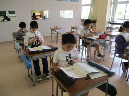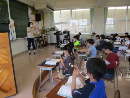 5月18日(水) 5年生 音楽科 リコーダーの練習の様子 公開日 2022/05/19 更新日 2022/05/19 5年生 音楽科では毎時間リコーダーの練習を行っています。今日は、運指に気を付けながら、新しく習ったソのシャープの音や高音を美しく響かせていました。