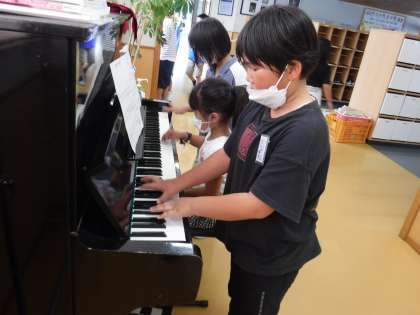 5月31日(火)楽しい昼休み 公開日 2022/05/31 更新日 2022/05/31 メール用カテゴリ お昼休みには、学年や異学年の友達といろいろな過ごし方を楽しんでします。 ピアノを弾いたり、廊下の作品展示を鑑賞したり、ダンゴムシを観察したり・・・。 興味のあるところへ行くと、友達の輪が広がります。 それが楽しい昼休みです。