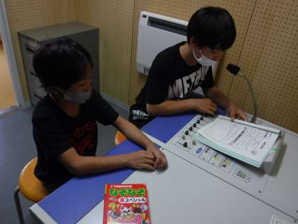 給食の献立の紹介、今朝の挨拶活動の振り返り、図書室からのお知らせ等、工夫を凝らした放送に耳を傾けます。