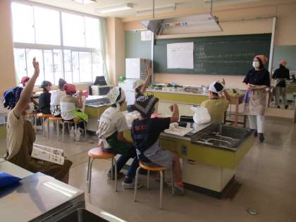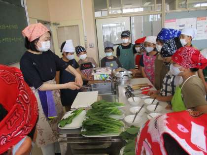 6月1日(水) 5年生 家庭科「野菜をゆでよう」1 公開日 2022/06/02 更新日 2022/06/02 5年生 家庭科で、じゃがいもとほうれん草をゆでる調理実習を行いました。 野菜によって、洗い方や切り方、ゆで時間などが違うことを学びました。