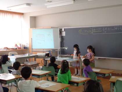生活科の時間に学校探検で見付けた「お気に入りのもの」「おすすめの場所」を紹介しました。弾いてみたいピアノ、グラウンドにあってみんなで遊びたい鉄棒や雲梯、お姉さんがいる教室、おもしろい本がある図書室など、理由もしっかりありました。