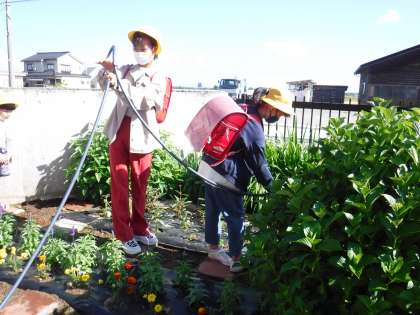 6月9日(木)花壇の花を大切に育てます 公開日 2022/06/09 更新日 2022/06/09 メール用カテゴリ 委員会で花壇の花の世話をしています。 花壇の世話をする上級生を下級生が見ています。 心を込めた仕事をありがとう。