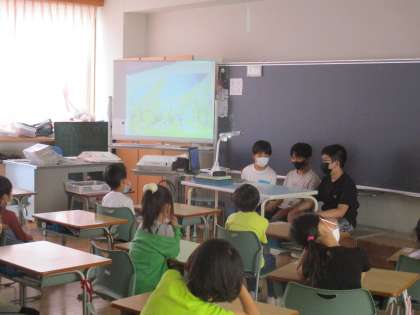 さわやかタイムに図書委員会が下学年への読み聞かせを行いました。図書委員会は各学年に合った本を選び、楽しんでもらえるよう練習をしてきました。下学年の子どもたちは、そんな思いを受け止めて真剣に聞いていました。次回は上学年への読み聞かせを予定しています。お楽しみに!