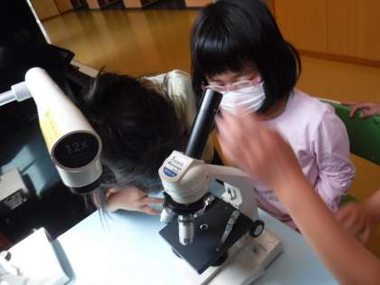 6月10日(金)アマリリスの花粉を見たよ 公開日 2022/06/10 更新日 2022/06/10 メール用カテゴリ 地域の方からお借りした「アマリリス」が大輪の花をつけています。こぼれるような花粉を顕微鏡で見てみました。 「うわあ、こんな形をしているのだね」と、一粒の花粉の形に驚いていました。 顕微鏡をのぞいて歓声をあげていたら、「何、何?」「見せて見せて」とどんどん興味が広がる子供たちでした。