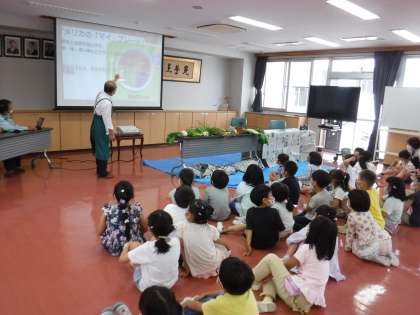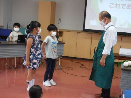 6月13日(月)1年生 やさい・くだもの・大好き!! 公開日 2022/06/14 更新日 2022/06/14 メール用カテゴリ 外部講師をお招きして、「やさい・くだもの・大好き!!」と題して、「旬の野菜や果物」に関する実感・体験学習を行いました。 学校給食で食べている地場産の野菜、くだものに実際に触れたり、クイズを楽しんだりしながら、野菜やくだものへの関心を深めることができました。 お話をしてくださった講師の方に感謝の気持ちを伝えることができました。