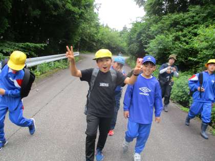 下りは行きより長い距離を歩きましたが、途中休憩を挟みながら、全員最後まで歩き続けました。疲れていても笑顔を見せる5年生でした。