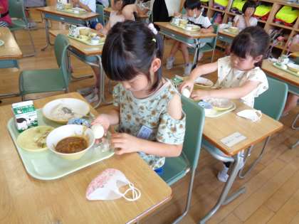 今日の給食 公開日 2022/06/16 更新日 2022/06/16 本日の給食 今日の給食の献立は、 麦ご飯 牛乳 カレーライス ゆで卵 ビーンズサラダ ヨーグルト でした。 今日の給食にゆで卵がでました。1年生の子供たちは、ゆで卵の殻をむきながら、「初めてむいたよ」「つるんとむけたよ」と、食べる前の楽しみも味わったようです。 子供たちは、カレーライスとともに自分でむいたゆで卵を味わっていました。 明日の給食もお楽しみに。
