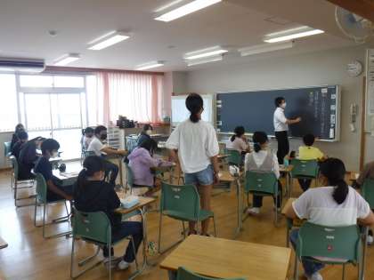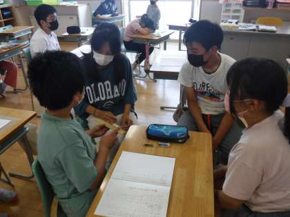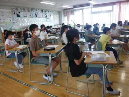 今日の学習参観では、道徳科で働く人の思いについて考えました。新幹線の清掃員の働く姿を動画で見ると、その素早さや効率よく働く工夫に驚いていました。お客様のために一生懸命働く様子から、自分もみんなのために清掃したいという思いをもちました。