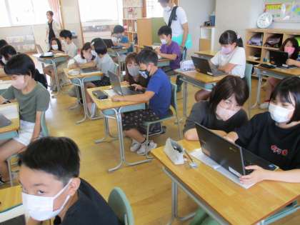 6月19日(日) 5年生 学習参観 公開日 2022/06/19 更新日 2022/06/19 5年生 学習参観では、家の人と一緒にネット依存・ゲーム依存チェックを行い、自分の日頃のメディアとの関わり方を振り返りました。ゲーム依存の事例をもとに、どのようにメディアコントロールすればよいか考え、自分たちでルールを決めました。この週末は、自分が決めたルールの下、メディアコントロールして過ごす予定です。
