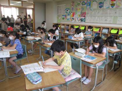学習参観では算数科「100より大きい数」のまとめを行いました。子供たちは、今までに習ったことを思い出しながら、取り組んでいました。集中して授業に取り組む姿を家の人に見てもらうことができました。