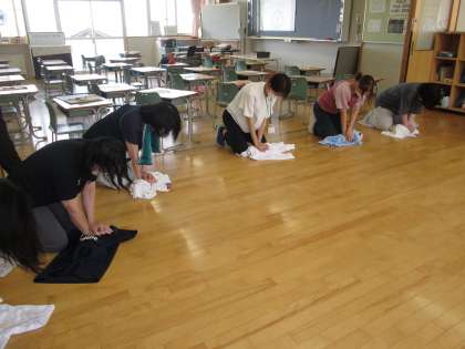 教職員や保護者の方で年に1度の救命講習会を実施し、赤十字富山支部の指導員の方々に、心肺蘇生法について詳しく指導していただきました。