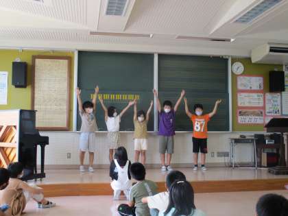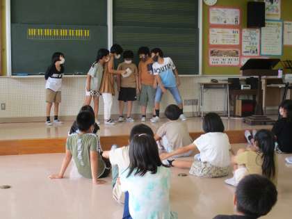 5時間目は、宿泊学習の雨天案で行う予定だった学級集会を行いました。宿泊学習のことを思い出しながら各班の出し物を楽しみました。