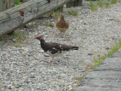 雷鳥を一目見たいと散策を続けると、なんと出会うことができました。子供たちは生で見ることができ感動していました。