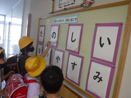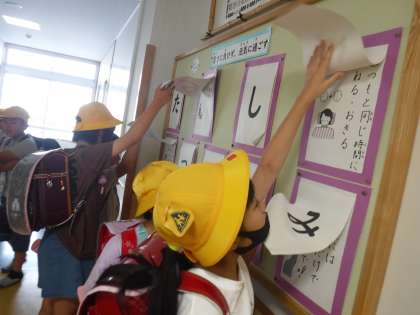 子供たちは、一文字ずつめくっては、夏休みが近づくのを感じているようでした。