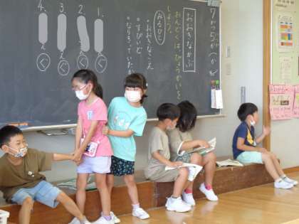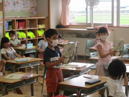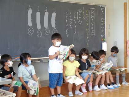 ひらがなの学習を終え、自分で文字を読みながら音読を楽しんでいる1年生です。