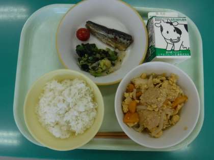 2年生の子供たちは生活科で野菜を育てています。キュウリやししとう等のその後で色づいてきたミニトマト。子供たちは、育ててきた自分のミニトマトと比べたり、世話をしたことを振り返ったりするなど、給食を通して学習を振り返っていました。