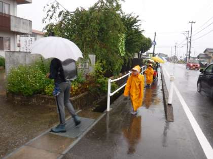 7月19日(火)挨拶は明るい朝をつくります 公開日 2022/07/19 更新日 2022/07/19 メール用カテゴリ 今朝はまとまった雨が降り、長靴で登校する子供が多く、歩くのが大変だったと思います。 雨が降る中でも、会釈をしながら挨拶をする子供たちがたくさんいて、心が明るくなりました。 挨拶ひとつは大きなひとつです。 心を明るく元気にします。 挨拶は、元気をチャージする源です!