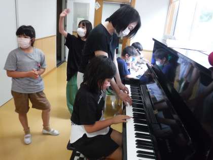 7月19日(火)休み時間です! 公開日 2022/07/19 更新日 2022/07/19 メール用カテゴリ 休み時間になりました。 先生と一緒にピアノを弾いたり、顕微鏡をのぞいたりする子供たち。 1年生は、ドアをノックして、「今、入ってもいいですか」と聞くことができます。 時と場を考えて行動できる1年生。校長室では、お客さんのように会議といって、静かにしりとりや言葉遊びをしていきました。お兄さん、お姉さんも1年生にお手本を見せてくれました。