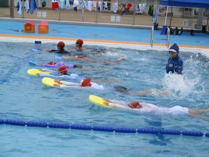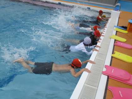 昨日に引き続き、外部講師をお招きし、水泳教室を行いました。子どもたちは昨日習ったことを生かそうと意欲的にチャレンジしていました。きれいなフォームで泳げるようになったり、顔を付けて前に進めるようになったりとできることをたくさん増やしていました。