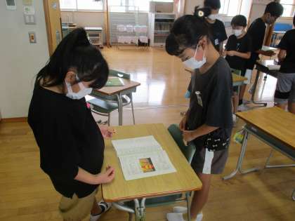 夏休みの応募作品や自由研究、自学ノートの発表会を行いました。
