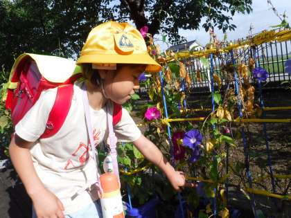アサガオが夏から秋へと変わっていく様子を子供たちは、つぶさに見て感じているようです。