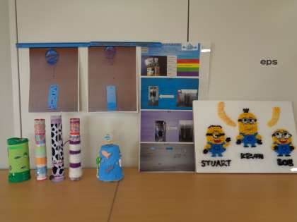 子供たちは友達の作品を見て、感想を伝え合っていました。