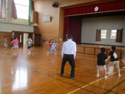 本日から教育実習生が5年教室で過ごします。子どもたちは早速休み時間に体育館に誘い、一緒にドッヂボールを楽しみました。