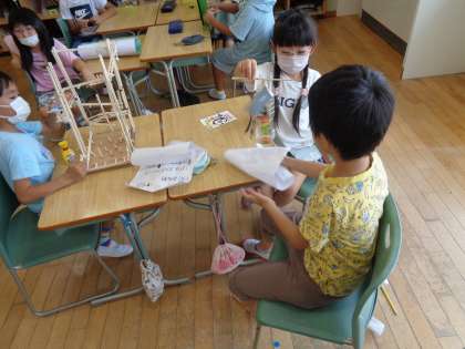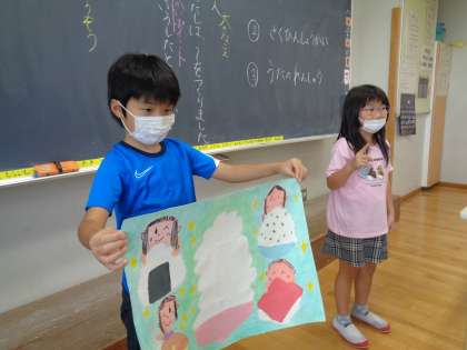 夏休みの思い出や作品紹介を行いました。たくさん質問や感想を言い合ったりして、楽しそうな様子でした。