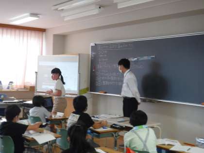 教育実習生が5年生の教室で算数科の授業に取り組みました。