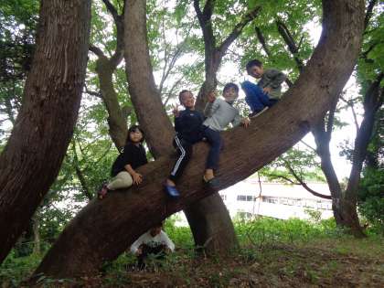 自然の遊具で遊びました。自分たちで遊びを工夫して楽しむ姿が見られました。
