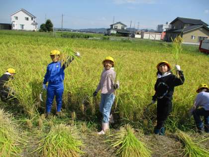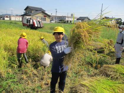 慣れてくるとさくさく作業が進み、楽しみながら稲刈りを行っていました。