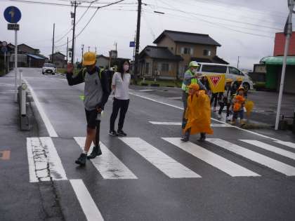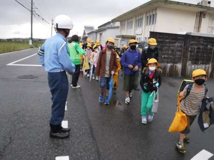 9月21日(水)秋の全国交通安全運動 公開日 2022/09/21 更新日 2022/09/21 メール用カテゴリ 本日より秋の全国交通安全運動が始まりました。 今朝早くから、地域や保護者の方々が子供たちの登校を見守ってくださいました。 子供たちは、横断歩道を渡るときに、「ハンドサイン」で横断の意思を伝えたり、会釈したりしていました。 夕暮れが早くなりました。歩行するとき、自転車に乗るときには交通ルールを守り、安全に気を付けて過ごしましょう。