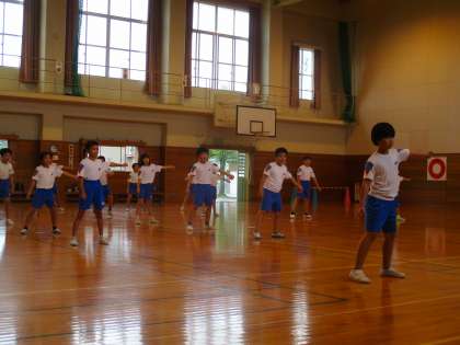 9月27日(火) 5年 ダンス教室 公開日 2022/09/27 更新日 2022/09/27 5年生 講師の先生をお招きし、ダンス教室を行いました。 学習発表会のために自分たちが選んだ曲に合わせて、先生が振り付けを考えてくださり、みんなで確認しました。速いテンポで踊るところもあり、難易度は高めでしたが、一生懸命覚えていました。本番までに、かっこよく踊れるようにたくさん練習していきます。