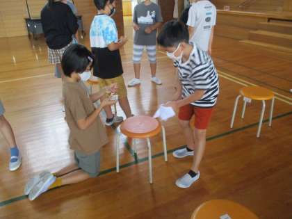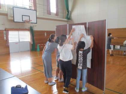5年生は登校後、午後から行われる就学時健康診断の会場準備を行いました。