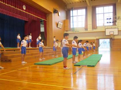 12日に行われる校内発表会、16日に行われる学習発表会に向けて、先生方に途中経過を見ていただきました。準備運動や片付けも演技のうちだということ、止まるときの視線や指先まで意識すること、緊張感に耐える練習をすること等、たくさんアドバイスをしてもらいました。子どもたちは日に日に真剣な表情で団結して練習に取り組んでいます。今日の練習を生かして、残り一週間で最高の演技をしてくれることを期待しています。