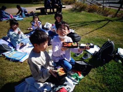 10月31日(月) 3年生 社会科見学 公開日 2022/10/31 更新日 2022/10/31 3年生 3年生校外学習の最後の見学先は、富山市民族民芸村。到着後、見学前にお昼ご飯を食べました。気持ちのいい天気のもと、おいしいお弁当を食べる3年生の子供たちから、思わず笑顔がこぼれていました。