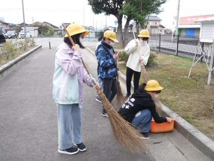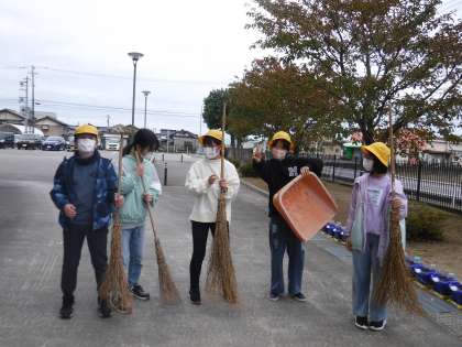 今日も鮮やかな色の落ち葉を6年生が掃いています。