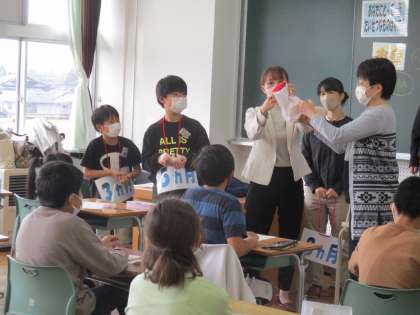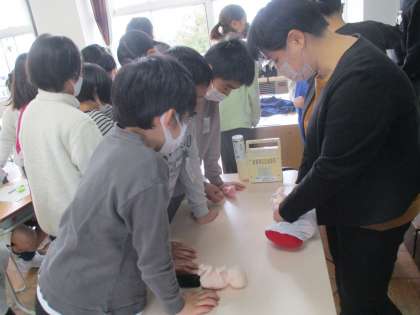 子どもたちは、実際の赤ちゃんの大きさが分かる人形を抱っこしたり、赤ちゃんの心音と自分の脈拍を比べたり、妊婦体験をしたりするなど、貴重な経験をさせていただきました。活動を通して、小さかったいのちが、いろいろな人の支えがあってここまで大きく育った奇跡を身をもって実感していました。この学習を生かして、これからも自分や周りの人のいのちを大切にして過ごしてほしいと思います。