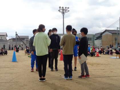 11月5日(土) 運動委員会 なかよし班対抗リレー大会 公開日 2022/11/05 更新日 2022/11/05 輝け!老田っ子 運動委員会の子供たちが、なかよし班対抗リレー大会の進行や準備片付けをがんばりました。自分たちで気付いて積極的に動く姿もありました。