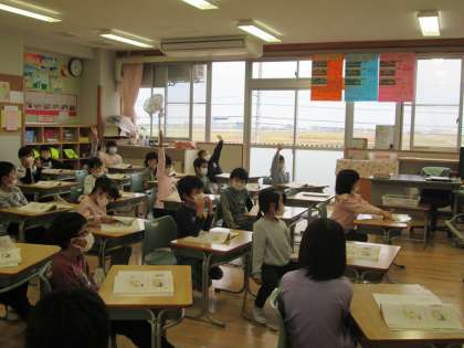 11月5日(土) 1年生 学習参観 公開日 2022/11/05 更新日 2022/11/05 1年生 学習参観では、道徳科「ちゃんとのたつじん2」の学習で、気持ちのよい家での生活について考えました。2つの絵を見比べることで、どうすることが達人なのか、具体的に自分の考えを話しました。また、今の自分自身についても振り返ることができました。 家でも「ちゃんとのたつじん2」を目指してほしいです。