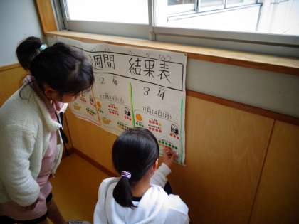 11月14日(月) 委員会活動 公開日 2022/11/16 更新日 2022/11/16 輝け!老田っ子 今日から給食・放送委員会と環境・保健委員会が協力して、「食べっこ週間」に取り組んでいます。11月5日(土)に行われた学校保健委員会では、バランスのいい食事を取ることの大切さや3色の栄養素を摂取することのよさを学びました。丈夫で強い体を作るためには、バランスのよい食事の摂り方が大切です老田っ子みんなにこのことが伝わり、少しでも意識した行動となるように働きかけていきます。