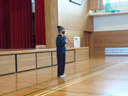 自慢したい会パート1を行いました。様々なジャンルの特技を自信いっぱいに発表している姿が見られました。見ている老田っ子たちも、拍手や歓声で応援しました。