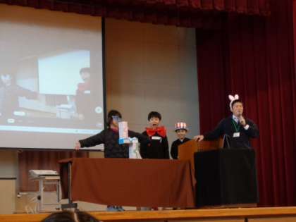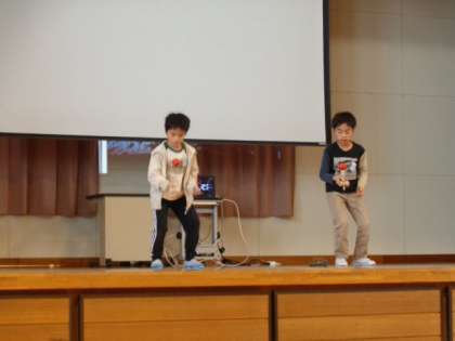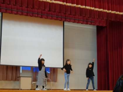 上段・・・リズムの速い曲に合わせてけん玉をする3年生
