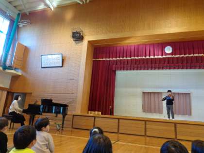 ヴァイオリンの練習の成果を発表した6年生です。きれいな音色が体育館に響きました。