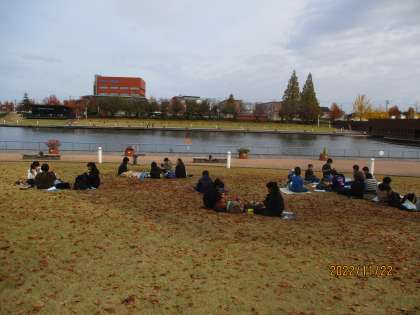 天候が心配でしたが、お昼には晴れ、環水公園でお弁当を食べることができました。